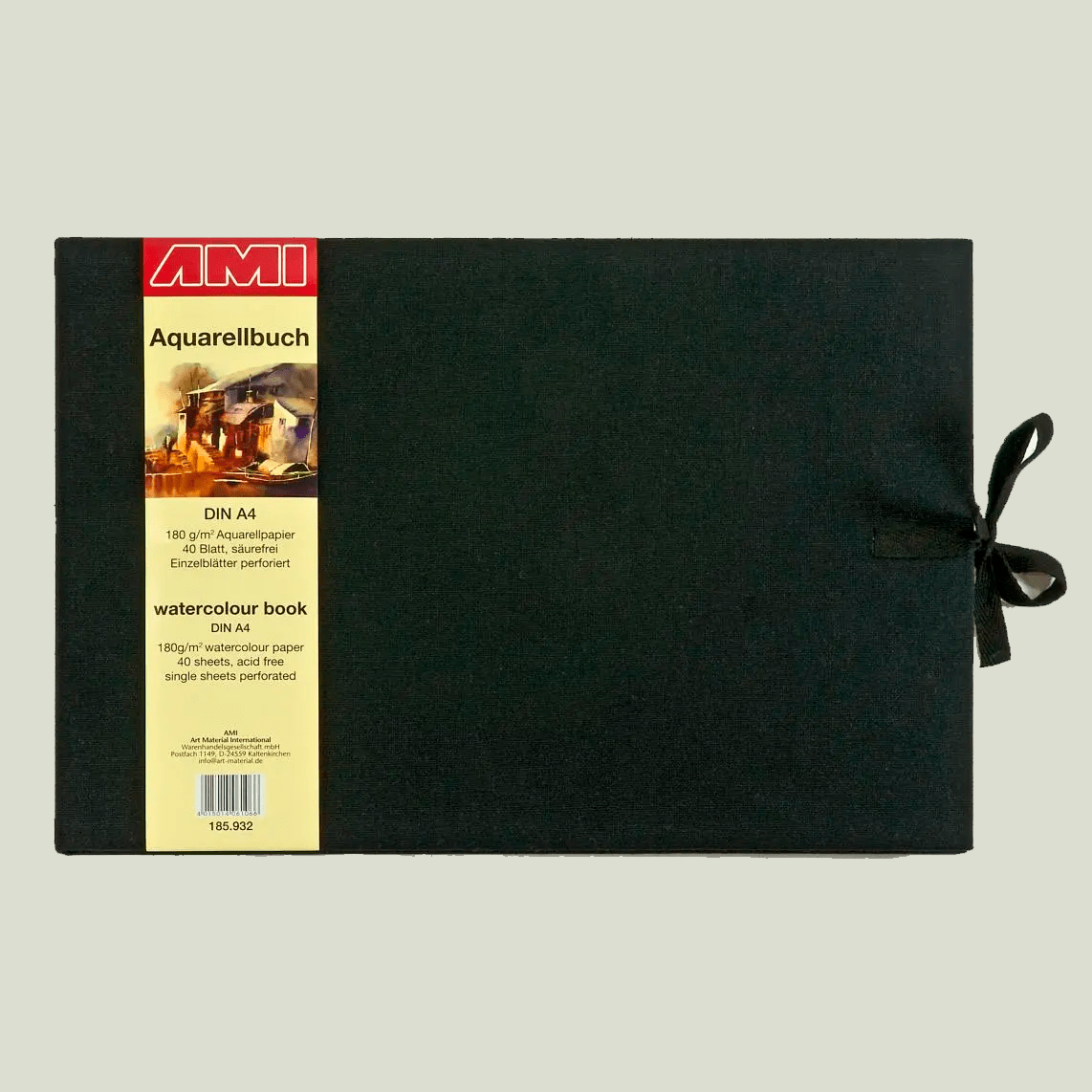 Saksalaisen AMI:n valmistama laadukas akvarellikirja 180 g, A4, 40 arkkia. Valkoinen, happovapaa akvarellipaperi. Jokainen arkki on erikseen irrotettavissa perforoinnin ansiosta. Musta pellavakansi ja musta sulkijanauha.