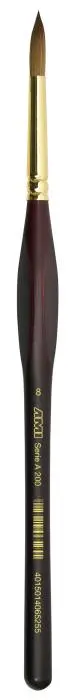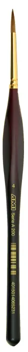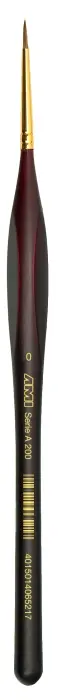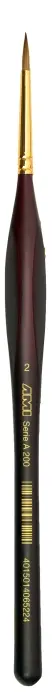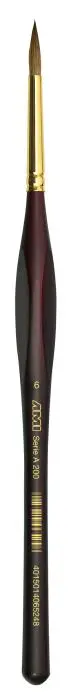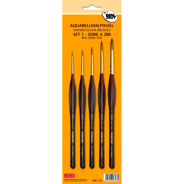 Saksalaisen AMI:n laadukas akvarellisivellinsetti näädänkarvasta. Sisältää viisi pyöreää sivellintä, joissa saumaton, kullanvärinen holkki ja lyhyt, ergonomisesti muotoiltu, viininpunaiseksi maalattu varsi. Sisältää siveltimet seuraavissa kokoluokissa: