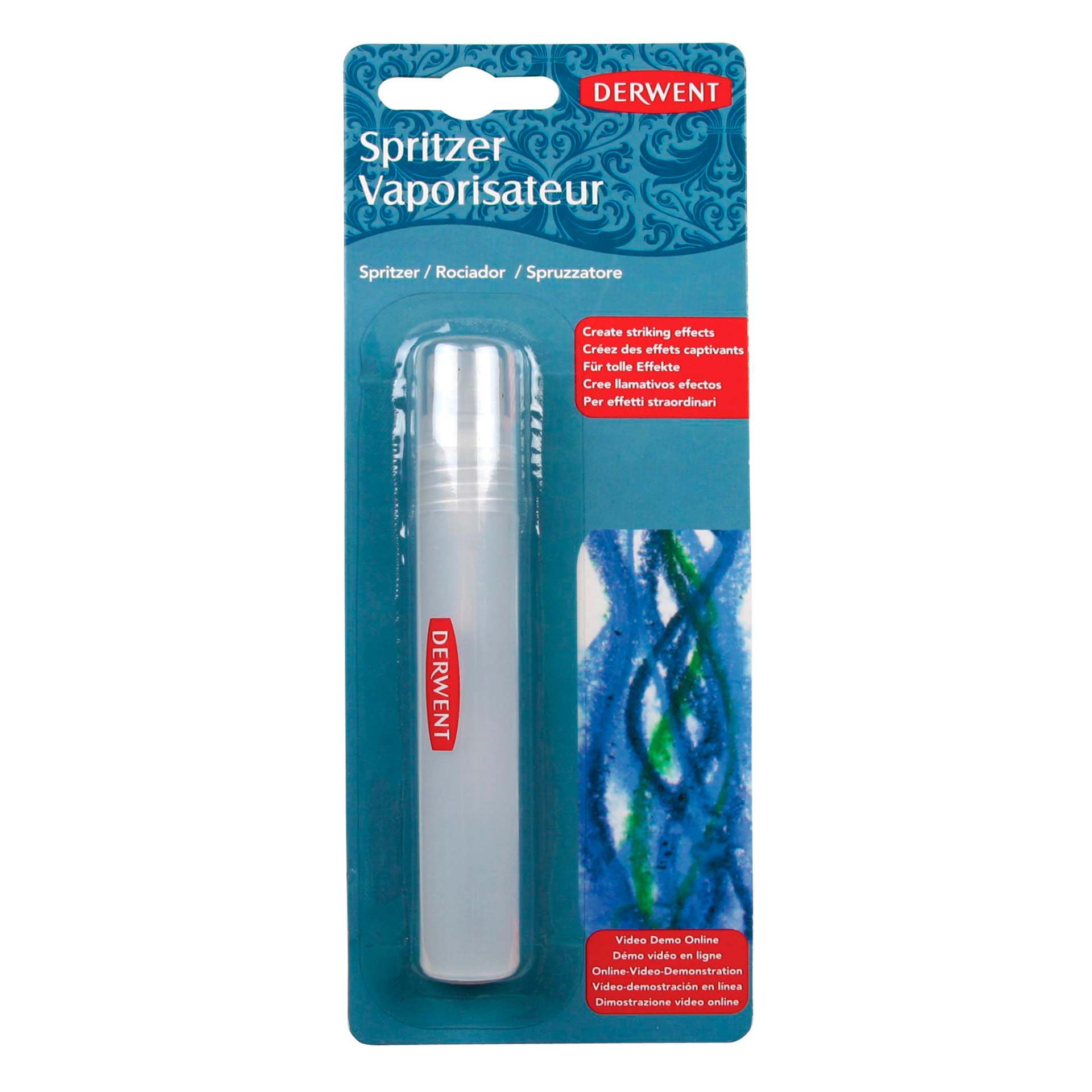 Suihkepullo lisää uuden luovan ulottuvuuden vesiliukoisten värien käyttöön. Suihkuta vettä suoraan vesiliukoisten piirustusten päälle luodaksesi mielenkiintoisia tekstuureja, värikulkuja ja tippuvia tehosteita. Voit myös liuottaa väripigmenttiä veden sekaan (esimerkiksi Inktense tai Watercolor), täyttää suihkepullon ja suihkuttaa väriä suoraan kuvaasi. Monet taiteilijat myös suihkuttavat vettä kevyesti maalausten päälle säilyttääkseen märän työstettävän alueen. Kätevän kokoinen putkilomainen suihkepullo mahtuu mukaan penaaliin tai Derwentin käteviin säilytyskoteloihin. Suihkepullon koko on n. 13 cm x 2 cm.