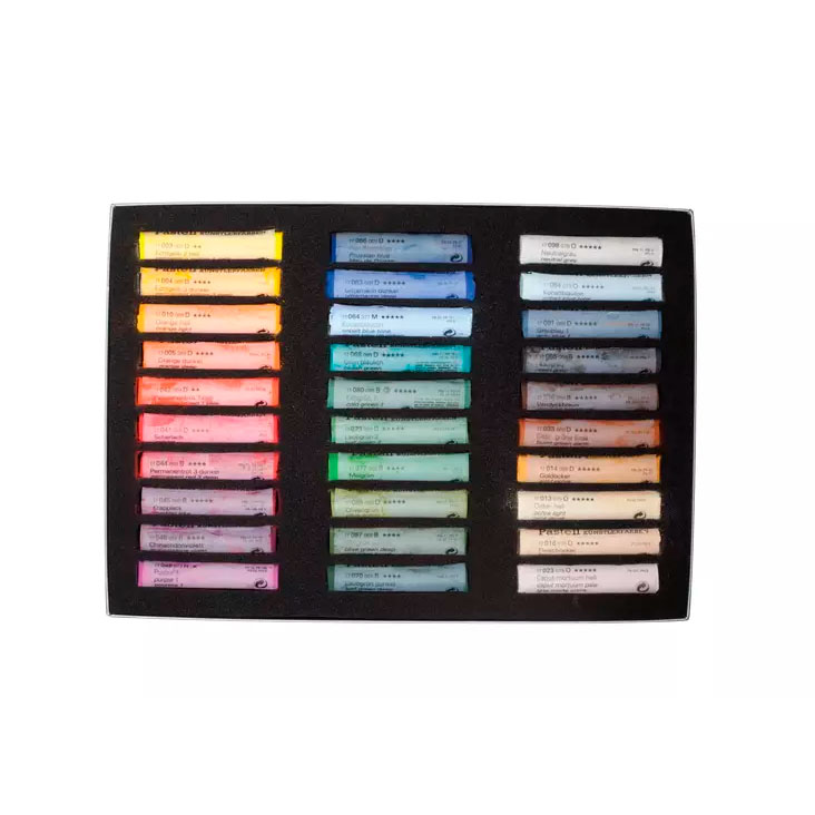 Schmincke Artist’s Pastellit ovat kooltaan noin 67 mm × 11 mm. Liitu on vegaaninen.