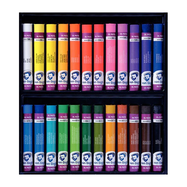 Van Gogh -öljypastellilajitelma sisältää 12 pastelliliitua, joiden värit ovat kirkkaat ja peittävät ja jotka on valmistettu puhtaista pigmenteistä, mineraaliöljyistä ja sideaineista. Ne levittyvät poikkeuksellisen pehmeästi ja tasaisesti ilman pölyä. Erinomainen peittokyky ja helppo värinsiirto. Soveltuvat monenlaisille alustoille.